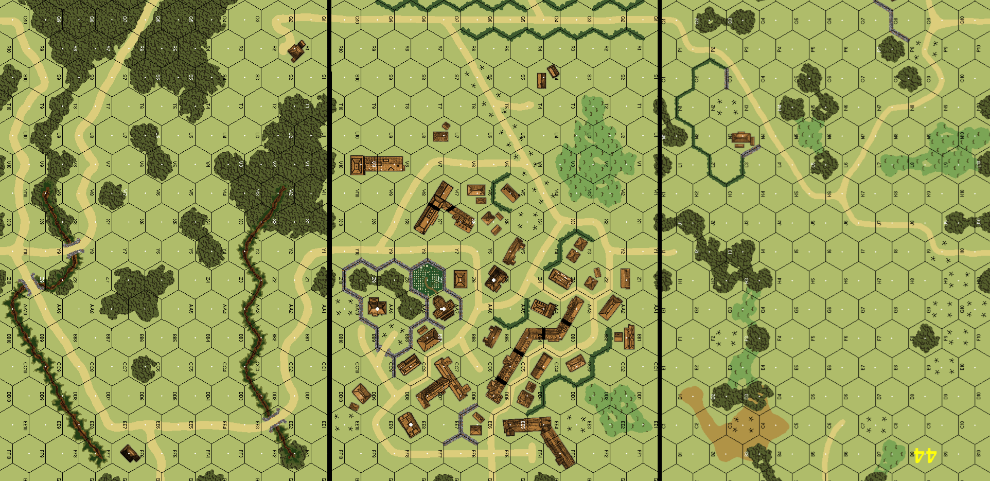 Since early March 6, Panzer-Armee had struggled to overcome the defenses of Marshal Tolbukhin's 3rd Ukrainian Front between Lake Balaton and the Danube. While other units had made little progress towards the initial objective, the Sió Canal, a successful night attack by SS-Panzer-Division 12 "Hitlerjugend" had cleared the strongly held junction of Pinkocz-Puszta. This in turn left the lynchpin of the current defensive belt-the town of Dég-isolated and vulnerable to assault. Taking advantage of the early morning mist, SS-Hauptsturmführer Has Siegel launched his armored group towards the town.. . . From Rate of Fire #17: "This scenario features a heavy metal clash as lower quality SS subject to ELR replacement attack a Soviet held village from two sides. The five games ended up with two German and three Soviet wins. No significant subsequent changes were made, except for a proviso that the rolls for seeing which SU-100s were TI could be made secretly if agreed by the players."Attacker: German (SS) (SS-Panzer-Division 12 "Hitlerjugend")