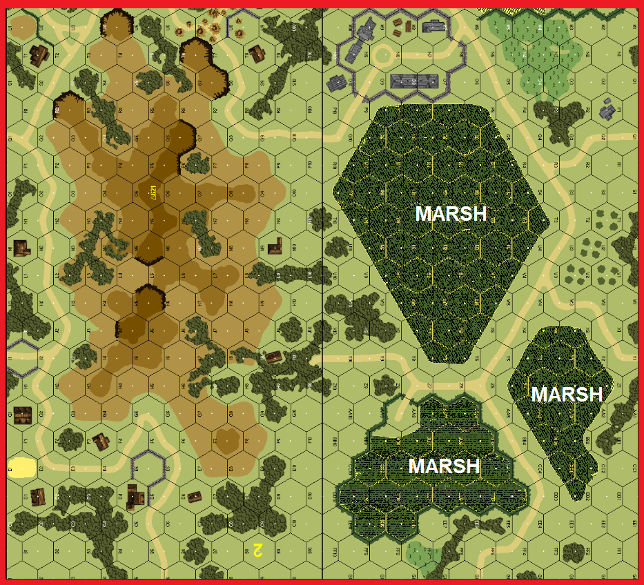 | Misc Rules: | Treat Grain on bd 43 as Marsh. D: 5 Pillboxes, Wire, Trenches, Mines |