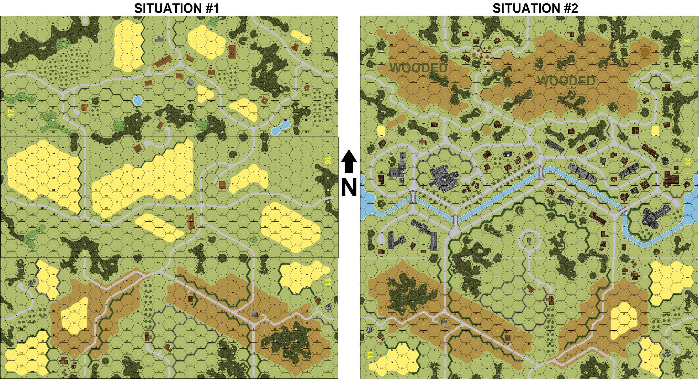 | Misc Rules: | Spilt forces, Paved roads, Hills on Bd 2: Level 1, Wooded. |