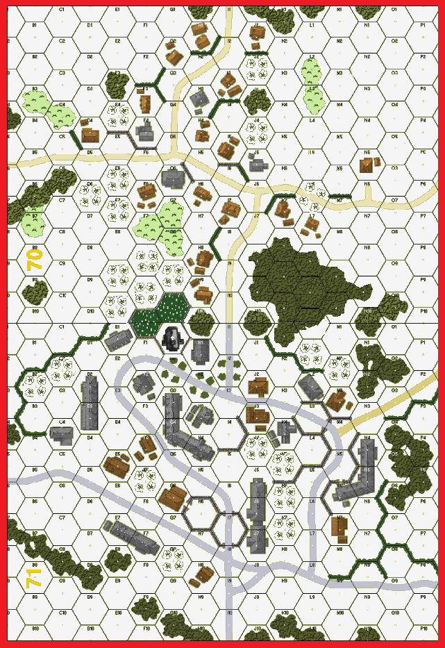 | Misc Rules: | GS (E3.72), NQ (A20.3), HtH (J2.31), Factories (B23.74), Rooftops (B23.8) D: 3 Fortified Buildings |